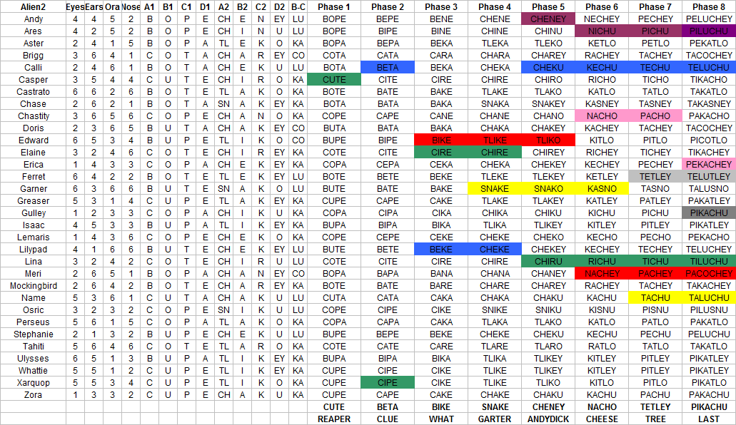 Doing each step results in a new set of instructions. Each results in the Plutonians being put in a new order, and paperclips of various colors being moved.