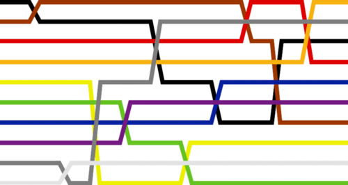 Each MP3 is 88 seconds long, and every 8 seconds two dialogues are swapped. In order, the swaps are: Black/Brown, White/Slate, Yellow/Slate, Violet/Green, Black/Slate, Yellow/Green, Black/Blue, Red/Brown, Black/Brown, Red/Orange. These swaps are shown on this diagram.