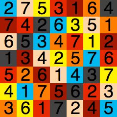 There are also twelve colored tetrominos presented with the postcards that can be rotated to match uniquely to the location of some buildings in one of the solution grids, with one colored square marked with a hospital sign H. Using the H buildings' heights as an index into the appropriate city names gives letters. Taking these letters in grid order based on the building location as shown below gives the answer TRAUMA CENTER: