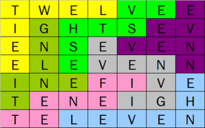 Reading row by row gives a series of numbers. These match certain kids' ages. The first letters of the matching kids' names spell the Doctor answer, HELLRAISER.