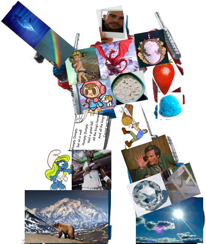 | Remove a trigram from within me, and I transform into a cartoon character. | Find both the trigram and the cartoon character within the Ultimate Transformer. Move the trigram into the cartoon character so this step’s original transformer appears within the Ultimate Transformer. |
