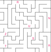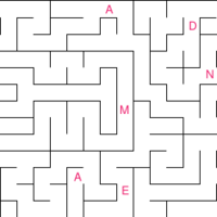 Taking the images and arranging them in a 3x3 grid according to the filenames gives a maze with letters on it: