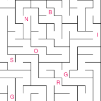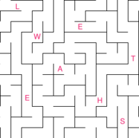 Finding the correct path through the maze yields the phrase LEGO MAZEWALKER DESIGN GROUP. The Lego Mazewalker is designed by the Hempel Design Group, so the answer is HEMPEL.