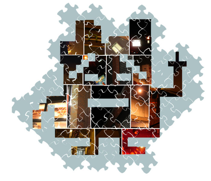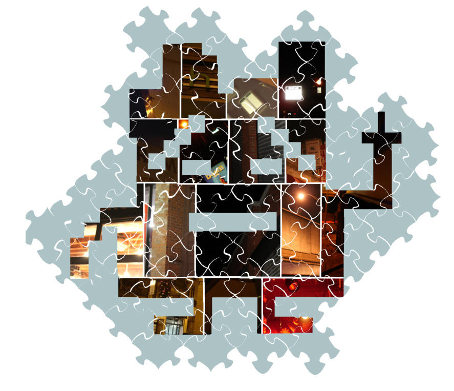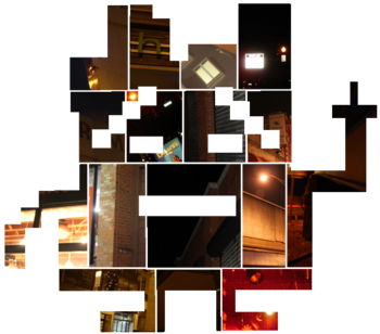 When assembled, the jigsaw forms the outline of a Mooninite, separated into 16 images: