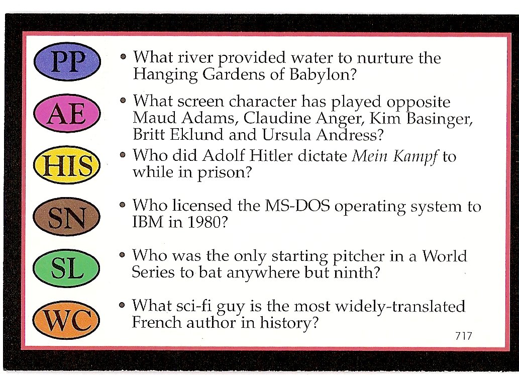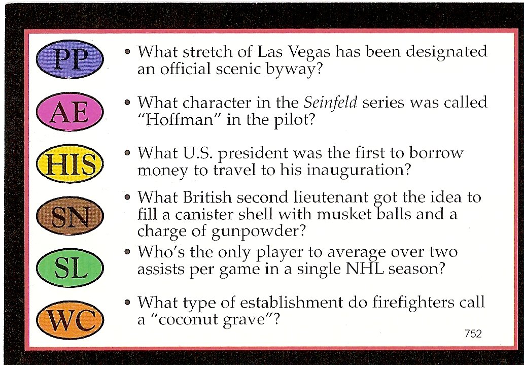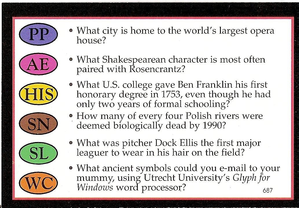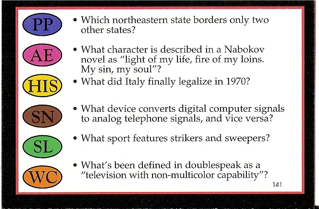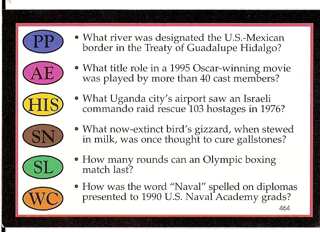 - Wild Card answer, as given on the card, was the answer to another question on that card (41, 29, 23, 27)