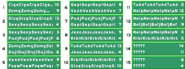 After you do, you can help us out with a dilemma we have. We are supposed to deliver a sign to each of our 15 cities, but need help figuring out which city gets which sign. On the map, the distance between any two dark circles, or any dark circle and city, is exactly one mile. However, many of our citizens are superstitious about traveling on the switchback roads that travel over the "edge of the world" (such as the 2-mile road that connects alpha and pi). Thus, the top figure on each sign is the shortest distance to the named city without using any switchback roads. The bottom figure is the shortest distance to the other named city, using these switchback roads if necessary.