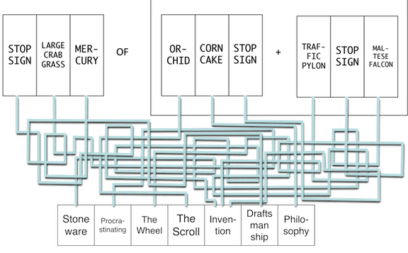 As per the instructions, alphabetize the tech names by last letter, and fill them into the boxes at the bottom. Now you get to play a little follow-the-twisty-lines in order to feed the puzzle answers into the boxes at the top: