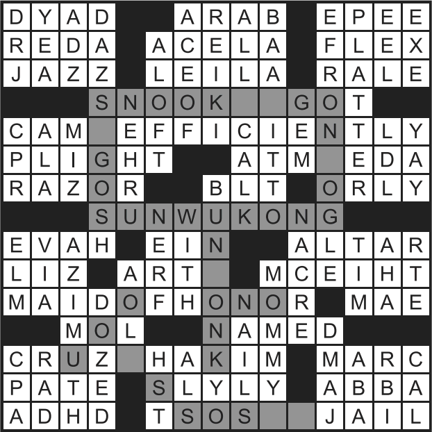 = LettersThis instructs solvers to shade in the letters of SUNWUKONG (the Monkey King from “Journey to the West”) wherever they appear. This reveals another Chinese character,