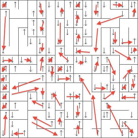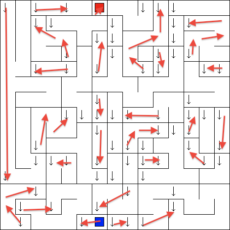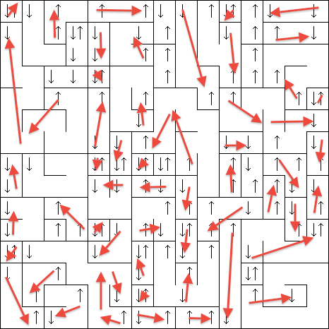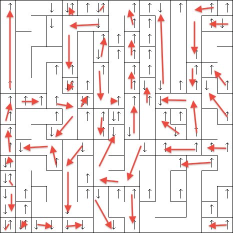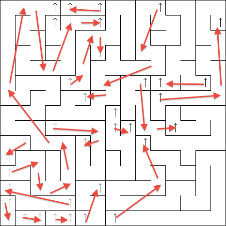 The following images display the path with arrows, and then the hollowed out portions of the maze with spraypaint.