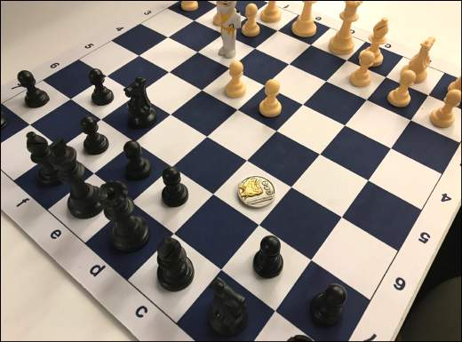 “An opening gambit before a game of chess whereby the missing pieces are replaced by small ornaments from the mantelpiece.”