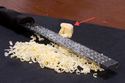 “The small awkward-shaped piece of cheese which remains after grating a large regular-shaped piece of cheese and enables you to cut your fingers.”
