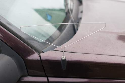 “A coat hanger recycled as a car aerial.”