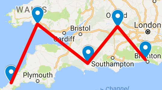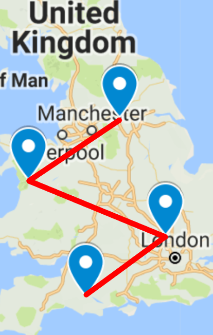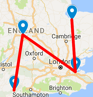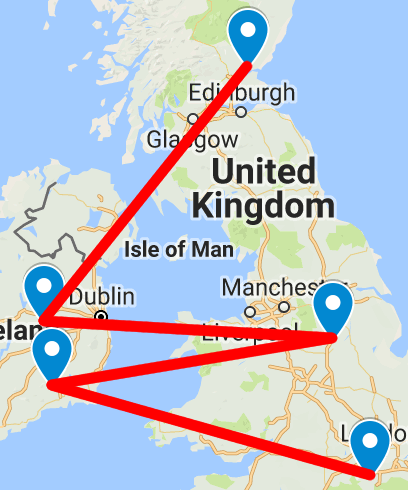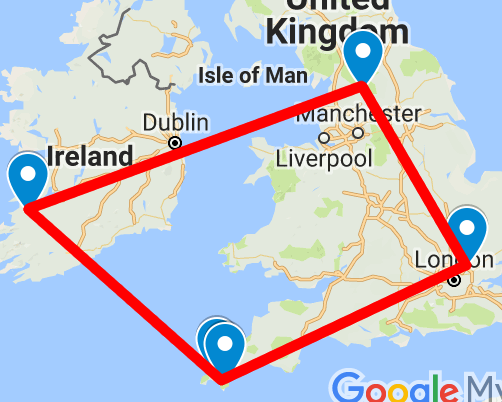 Each of the pictures represents a location/word in Adams and Lloyd’s The Meaning of Liff. When the locations are plotted on a map in order within their groupings, they form letters which spell out SMALL NOVEL, the solution.