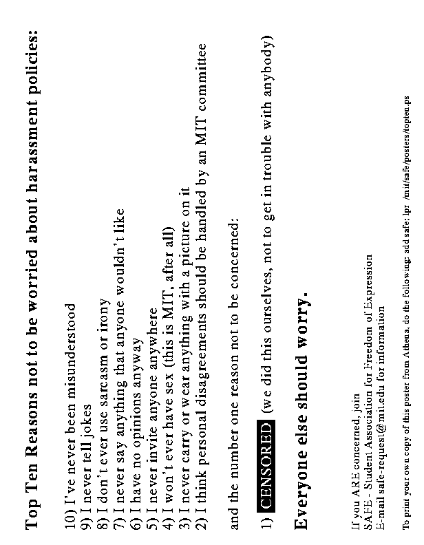 Top Ten Reasons not to be worried about harassment policies