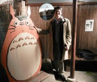 | Alex Huang waiting for the Catbus (Nekobasu) with a friendly neighborhood Totoro in Kyoto, Japan |