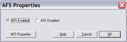 Result: The AFS Properties window appears. - Select the AFS Enabled option.