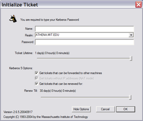 Result: You now have Kerberos tickets and the dog near the clock should turn green. - Open My Computer. You should now see two network drives