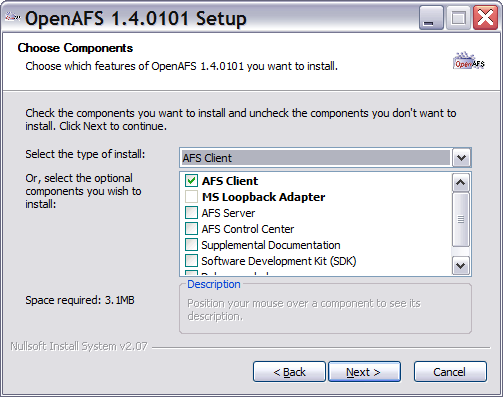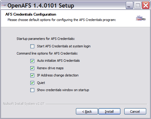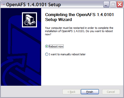 Result: The OpenAFS software will install and then prompt you to reboot.