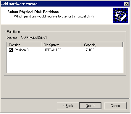 Select which partitions you want to use in the virtual machine. Only the partitions you select in this step are visible to the virtual machine. All other partitions are hidden from it.