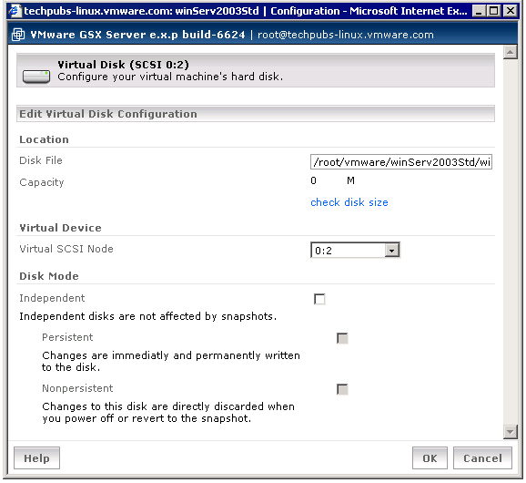 7. Decide if you want to make this virtual disk an independent disk. Under Disk Mode, check Independent, then check Persistent or Nonpersistent.