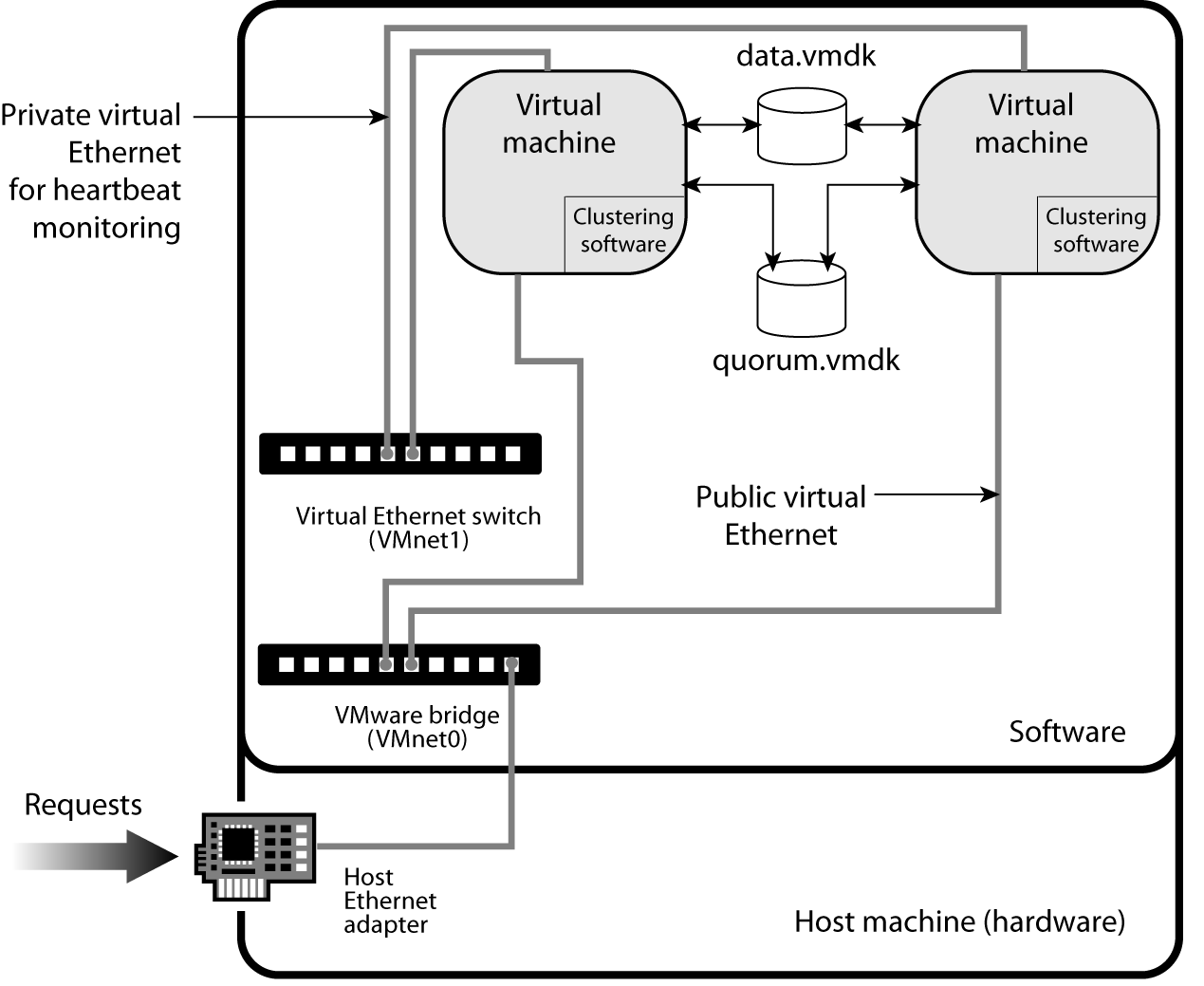 With GSX Server, you can create a simple cluster in a box to help mitigate the effects of software crashes or administrative problems.