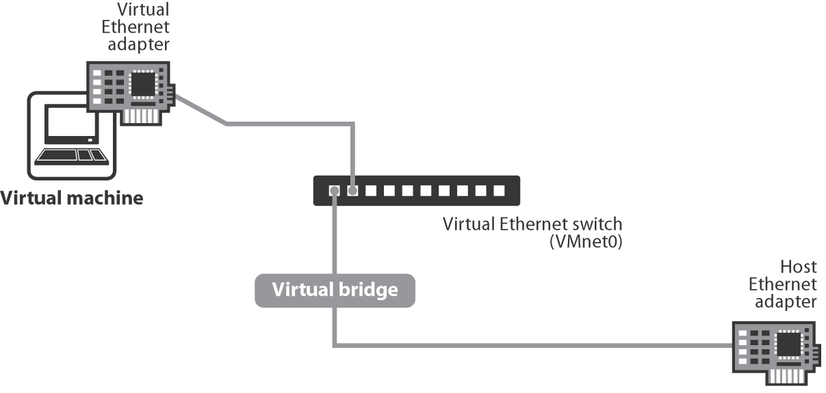 Bridged networking connects a virtual machine to a network using the host computer's Ethernet adapter.