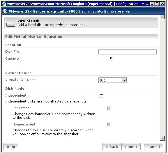 5. Decide if you want to make this virtual disk an independent disk. Under Disk Mode, check Independent, then check Persistent or Nonpersistent.
