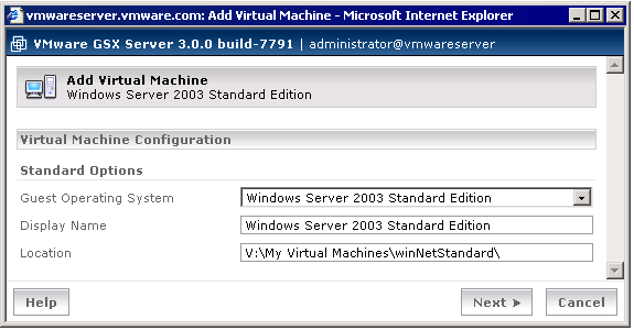 You can create new virtual machines from the VMware Management Interface. The process sets up a new configuration for each virtual machine you create in this fashion. You do not need to use the New Virtual Machine Wizard in order to do this. Creating a virtual machine using the management interface is similar to following the typical path when creating a virtual machine with the New Virtual Machine Wizard, although the management interface configures the virtual machine with bridged networking. You can change the type of networking to network address translation (NAT) or host-only networking after you create the virtual machine.