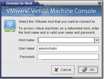 Specify the host name, user name and password to connect to that host, then click OK.