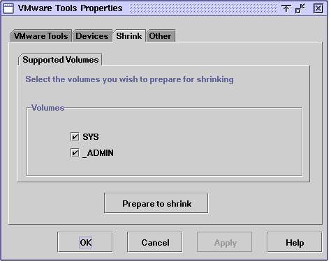 The Shrink tab gives you access to the controls you need if you wish to reclaim unused space in a virtual disk.