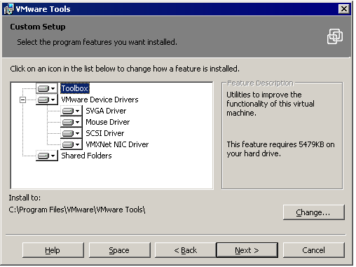 If you want to install all the VMware Tools components in a directory other than the default, click Browse and select the directory. If the directory does not exist, the installer creates it for you.