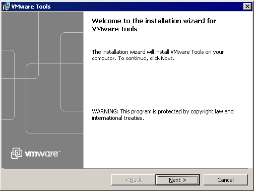 4. If you have autorun enabled in your guest operating system (the default setting for Windows operating systems), a dialog box appears after a few seconds. It asks if you want to install VMware Tools. Click Yes to launch the InstallShield wizard.