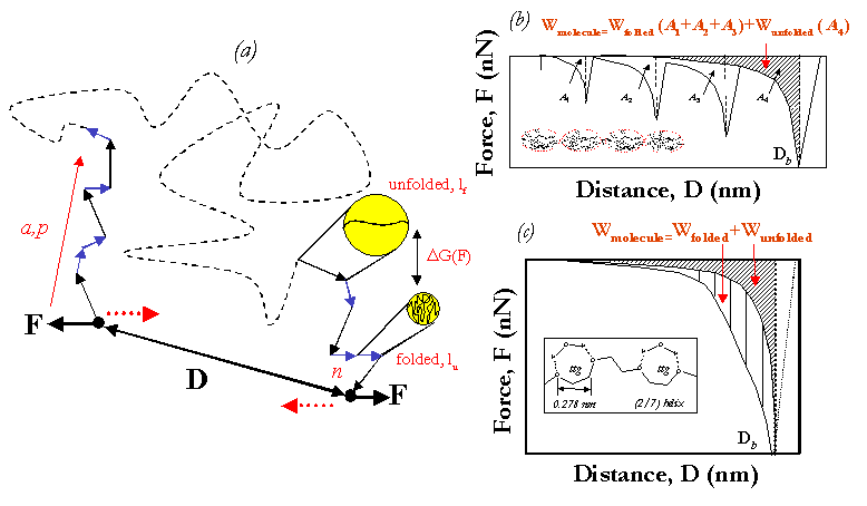entropic uncoiling peak : Wmolecule=Wfolded(A1+A2+A3)+Wunfolded(A4).