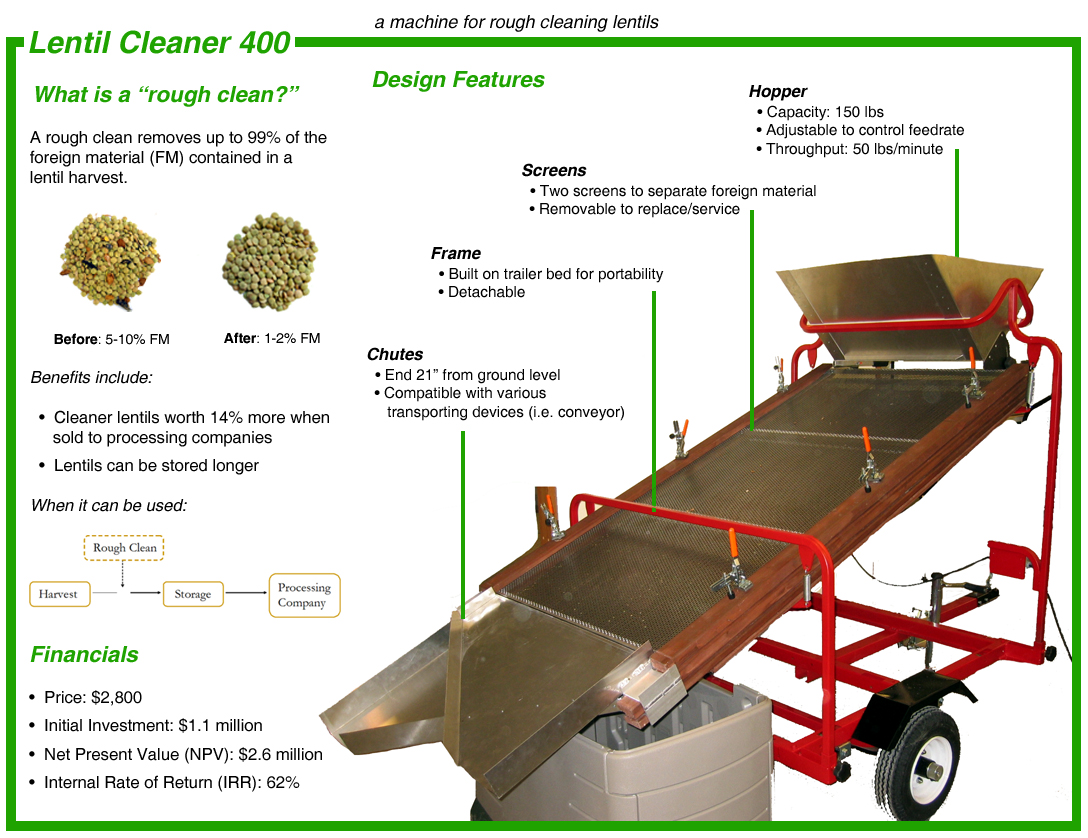A portable device for farmers that removes unwanted debris from lentils