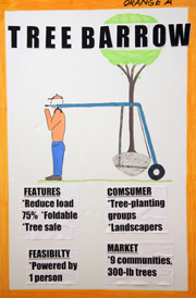 A means of transporting tree root balls and lowering them into holes