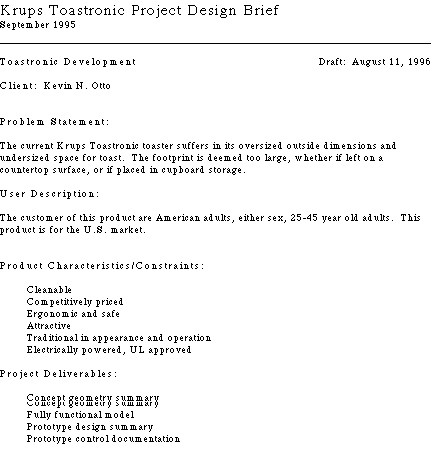 The project was kicked off with a project design brief.