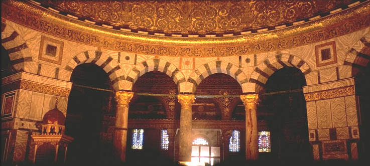 View of the interior of the Dome of the Rock, showing the inner ambulatory arcade.