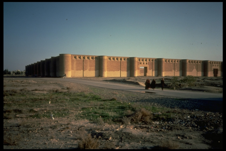 A general view of the mosque of al-Mutawakkil showing the external wall with semi-circular towers