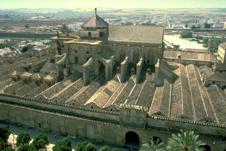 An aerial view of the mosque's prayer hall, showing the cathedral