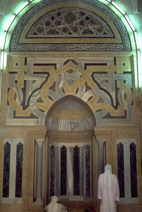 The Madrasa al-Firdaws in Aleppo, interior view of the mihrab with marble "Syrian knot" decoration.