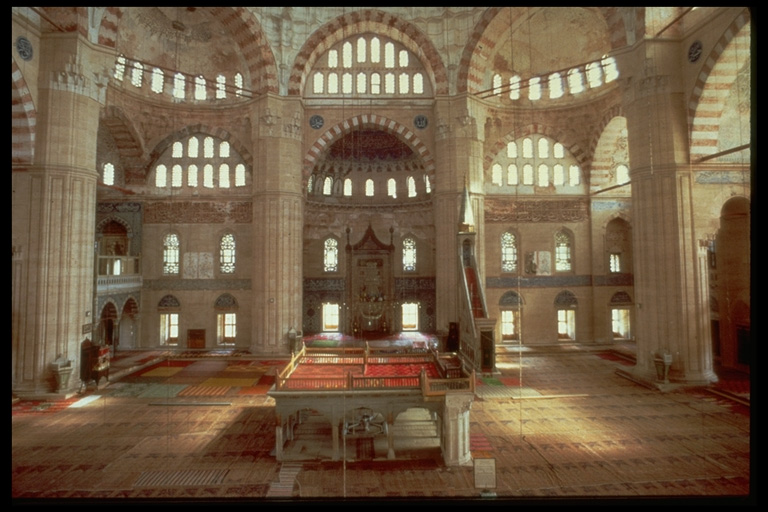 Interior view toward the mihrab showing the elephant pillars.