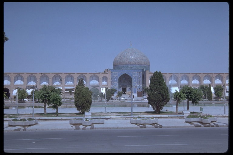 View of the Mosque's facade on the Maydan-i-Shah as seen from the balcony of the Ali Qapu.