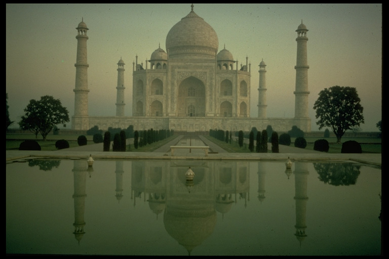 View of the Mausoleum on its plinth from the main central approach through the garden.