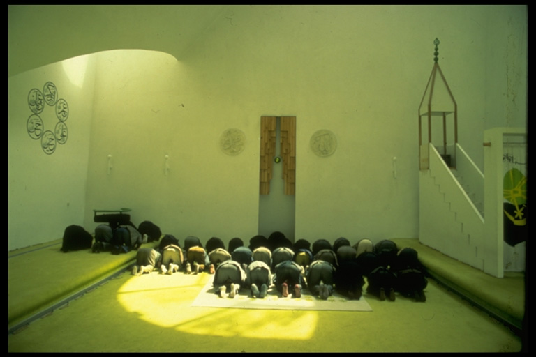 Interior view towards the mihrab showing the use of skylights to articulate the space.