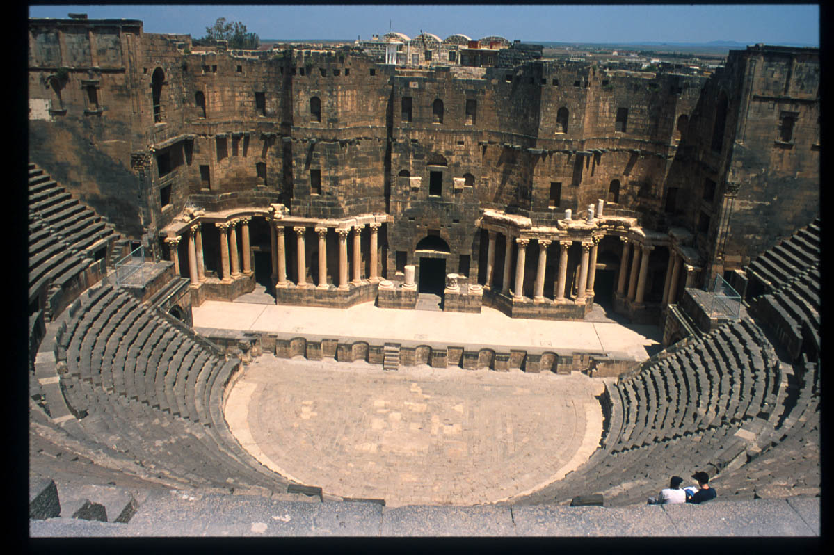 View of the Roman amphitheater that was turned into a citadel in the Ayyubid Period