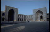 General view of the Mosque from the Maydan-i-Shah showing the portal with its two minarets echoed by the prayer hall iwan with its two minarets and dome.