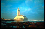 Mosque of Hassan II Casablanca, Morocco (1981-86): a gigantic mosque by the sea, this is the epitome of new state symbols magnified by the royal dynasty's claim of prophetic lineage. The architecture and decoration of the mosque are predicated on the idea that the architectural language of the past is the only legitimate one. The French architect, Michel Pinseau, was thus limited in his design to explorations of monumentality and opulence. |