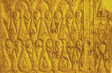 • Style C: moulded pattern, very abstract with a combination of vegetal and geometric motifs. Patterns are normally inscribed within borders.