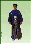 A man ususally wears a conservatively styled kimono of blue, black, brown, gray, or white.