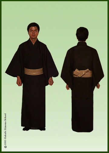A man's obi is narrow, and tied in a simple knot, in contrast to a woman's obi.
